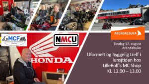 NMCU og MCF starter uformelt på tirsdagen ved å invitere til et hyggelig sosialt treffpunkt i lunsjtiden hos LilleRolf MC shop i Arendal.