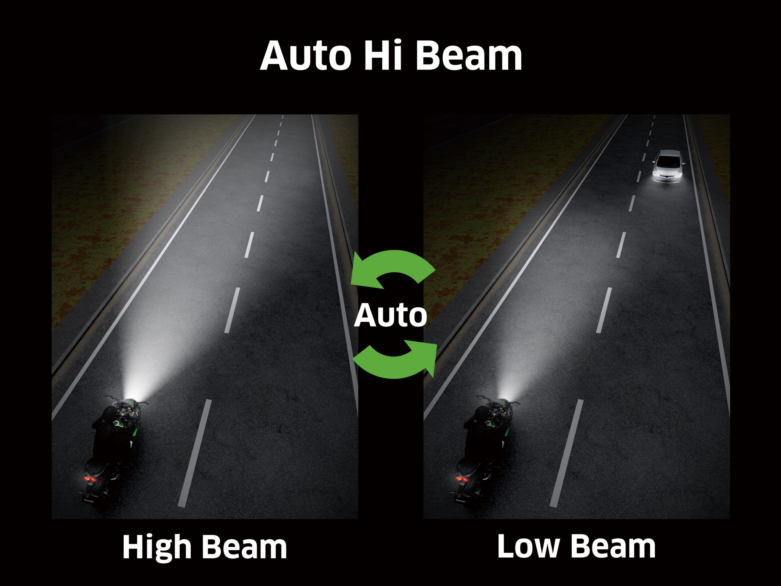 – Det nye automatiske fjernlyset slås automatisk på eller av etter behov. Ved hjelp av en kamerasensor vurderes lysstyrken til kjøretøy foran pluss gatelys osv, skriver Camilla Tangen hos Kawasaki importøren i Norsk Motor Import AS i en pressemelding.