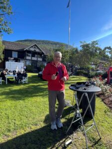 Treffgeneral Trond Olsen, foran Straand Hotel i forbindelse med treffet.