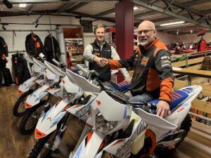 KTM og andre MC-kunder får økt service. Erlend Lønnum, daglig leder hos LEKS Motor Oslo AS til venstre og Jon Grevæg, daglig leder hos Spinnin Wheel AS på Mysen har samarbeidet mye i år.