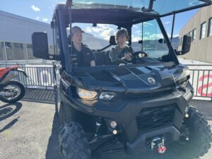 Erlend Lønnum sammen med Bærum sin ordfører Lisbeth Hammer Krogh som besøkte butikken i forbindelse med åpningen for 6 måneder siden. – Utrolig stort å får besøk av vår lokale ordfører, sier Erlend Lønnum. Hun kommer fra en gård selv og forstod umiddelbar hvordan hun skulle håndtere en Can-am ATV.