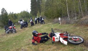 Noe som også er viktig for meg med Grustur i øst er at det skal være lav terskel for å bli med. Det er ikke nødvendig med den råeste sykkelen med rally-tårn, modifisert fjæring, siste skrik i kjøreutstyr og lang erfaring på grusen. Noen minimumskrav er det allikevel. Sikkerheten settes i høysetet. Vil ikke ha noen ulykker. Vanlig personlig sikkerhetsutstyr har de fleste. Dekkvalg kommer det mer om neste sesong. Det er også viktig å huske på at den som holder i gassrullen bestemmer hastigheten på tur, ikke den som ligger bak eller foran. Det er så lett å tenke på at de andre er mye bedre og synes jeg kjører seint. So what?? Man må lære å krabbe før man begynner å gå. Og igjen, ingen vinner Grustur i øst, selv om mange opplever store og små seiere.