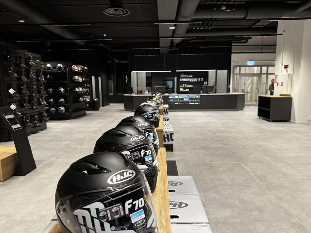 MC Oslo sin nye butikk er plassert i 3. etasje i Hans Møller Gasmanns vei 7 på Vollebekk. Her er det lett adkomst med både T-bane, bil og MC. Lokalene er innbydende og har en egen sosial sone midt i. Det er god plass og god avstand mellom utstilte motorsykler, bekledning, hjelmer og annet utstyr som selges. Daglig leder Kim Harald Jøranli anslår at det nok er plass til 2-300 kunder samtidig uten at det skal føles trangt.
