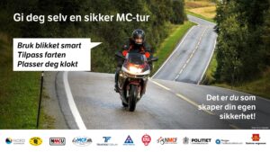 – Det er svært positivt at NMCF-forhandlerne tar sitt ansvar for MC-sikkerhet på alvor, og bruker budskapene aktivt. Det gir en mulighet for å dreie MC-praten innom sikkerhet, i tillegg til salgssamtalen. Vi «treffer» jo veldig mange motorsyklister med budskapet når det er synlig hos MC-forhandlerne. Bevisstgjøring av enkle tiltak og ansvarliggjøring for egen sikkerhet gjelder alle motorsyklister, så det er veldig bra at vi når det brede lag av motorsyklister, sier Lars-Inge Haslie i Statens Vegvesen.