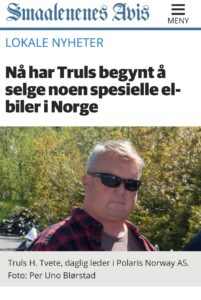 – Nå startet Polaris i Norge med salg av el-kjøretøyer, sier Truls H. Tvete (56) som er daglig leder for Polaris Norway AS til Smaalenenes Avis.