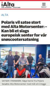 Nylig var toppene fra Polaris Europa og en ingeniør fra USA var på besøk hos Alta Motorsenter, med mål om å gjøre Alta til Polaris norske snøscooterhovedstad.