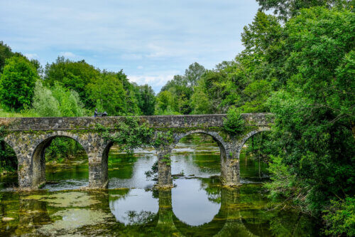 Rett utenfor Pamplona møtte jeg de første skikkelige bygene og jeg skyndte meg å skifte til regntøy ute på veiskulderen. Med store regndråper hamrende rett i fleisen i over en time var jeg mer enn klar for å stoppe og ta en velfortjent kaffepause. Jeg kikket nok en gang på vær-appen og bestemte meg for å dreie vestover og krysse fjellene nærmere kysten.