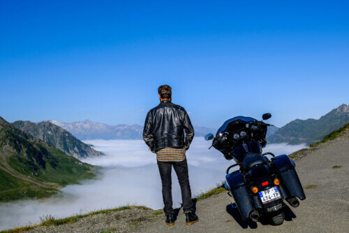 Etter en lunsj på toppen av fjellpasset slo jeg av en prat med noen likesinnede om min nye Road Glide Special, veiene i området og hvor alle var på vei. Så var jeg klar for å sette kursen mot et av de få punktene jeg hadde på listen over steder verdt å besøke, nemlig Col de Tourmalet. Veien gikk gjennom et mykt og kupert landskap, og jeg holdt hjelmkaraoken gående mesteparten av dagen. Barna vinket og folk smilte til meg når jeg passerte gjennom landsbyene, med en blanding av den umiskjennelige motorlyden og diverse rockeklassikere som soundtrack. En rullende klisje, ja vel, men jeg nøt hvert sekund av det! Så fort jeg kom litt dypere inn i regionen Hautes-Pyrenees, ble været litt kaldere igjen. Det var ikke noe poeng i å kjøre opp i høyden om kvelden, så jeg svingte like godt innom en campingplass nær byen Luz-Saint-Sauver. I det jeg slo opp teltet kom været fra kvelden i forveien tilbake, men jeg tok det med godt humør for nå ventet både god mat og drikke. Etter en deilig middag krøp jeg inn i teltet mitt, mens den beroligende lyden av lett regnvær dysset meg i søvn.