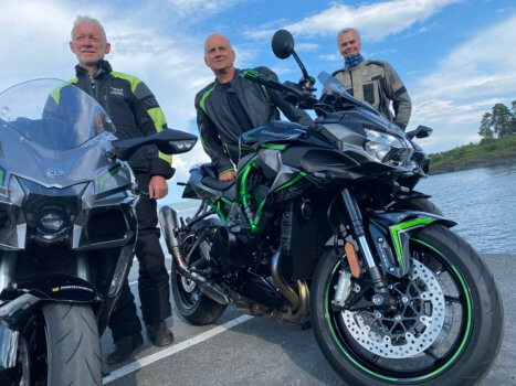 Tore og Jan kjører hver sin H2 Ninja, men Knut liker en mer oppreist sittestilling, og kjører en Z H2.
