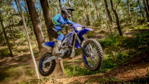 2022 WR250F har el-start og er utstyrt med en væskekjølt 4-takts motor som er betydelig oppgradert med løsninger fra YZ250F.