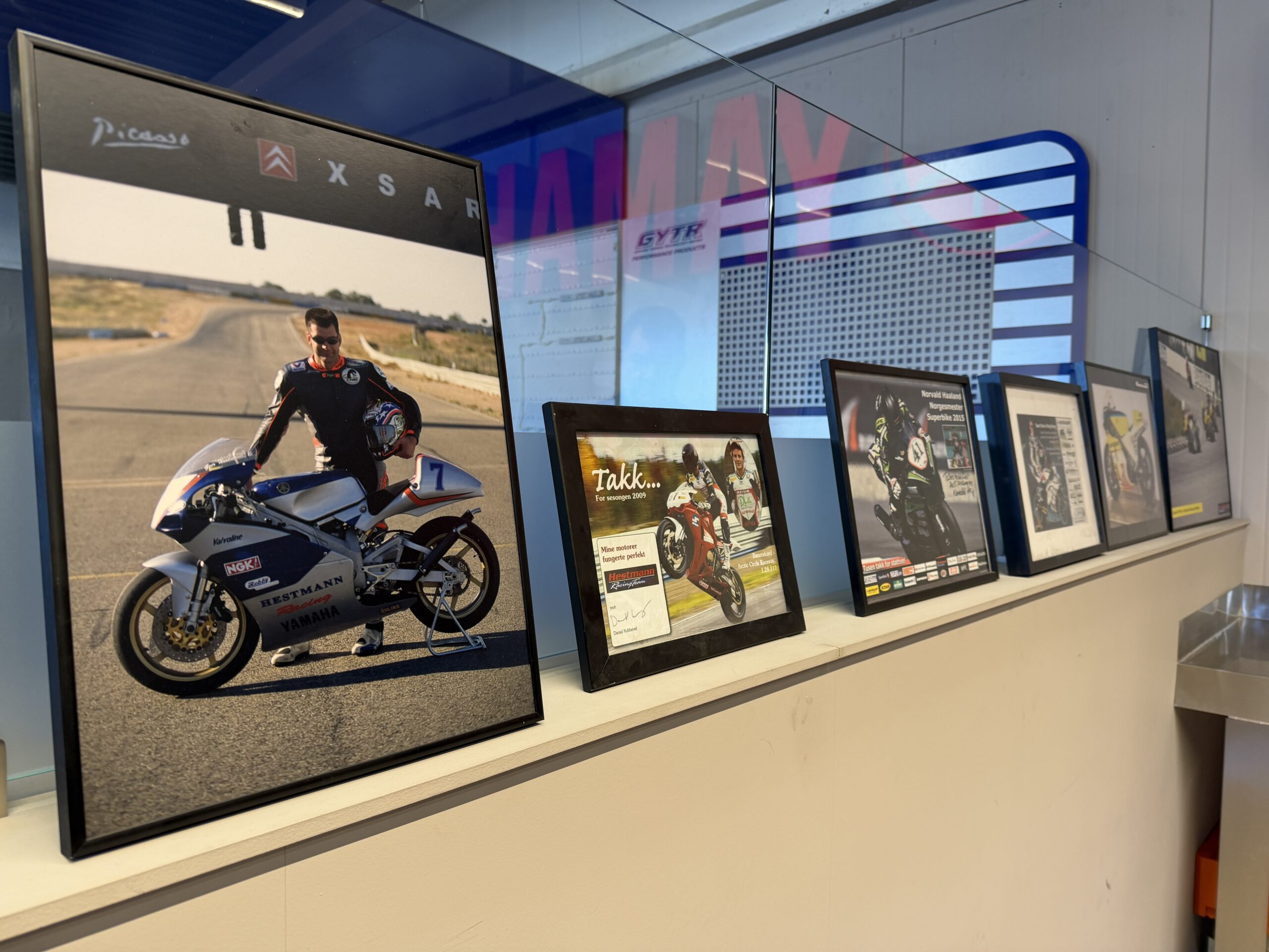 Og ikke nok med det. YRC High Performance kan nå smykke seg med den svært høythengende tittelen GYTR Pro Shop, som eneste i Norden og Baltikum, og som en av kun 20 i hele Europa. GYTR står for Genuine Yamaha Technology Racing og tilbyr Yamahas egne komponenter av høyeste kvalitet, fra enkeltdeler og tilbehør til fulle racekit. Kjetil fortalte om at kunder kommer fra både nær og fjern, og at YRC’s beliggenhet er svært gunstig.